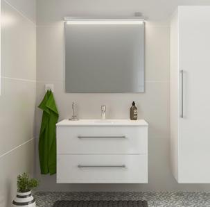 Servantinnredning fra Linn bad, Hilde 80 cm, hvit høyglans. Speil med lystopp.