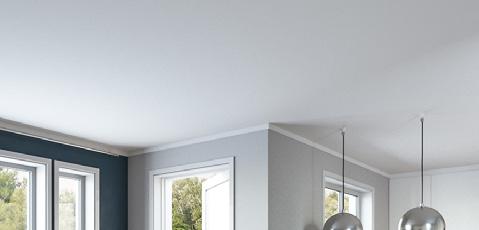 Himlinger leveres sparklet og malt gips for en slett overflate.