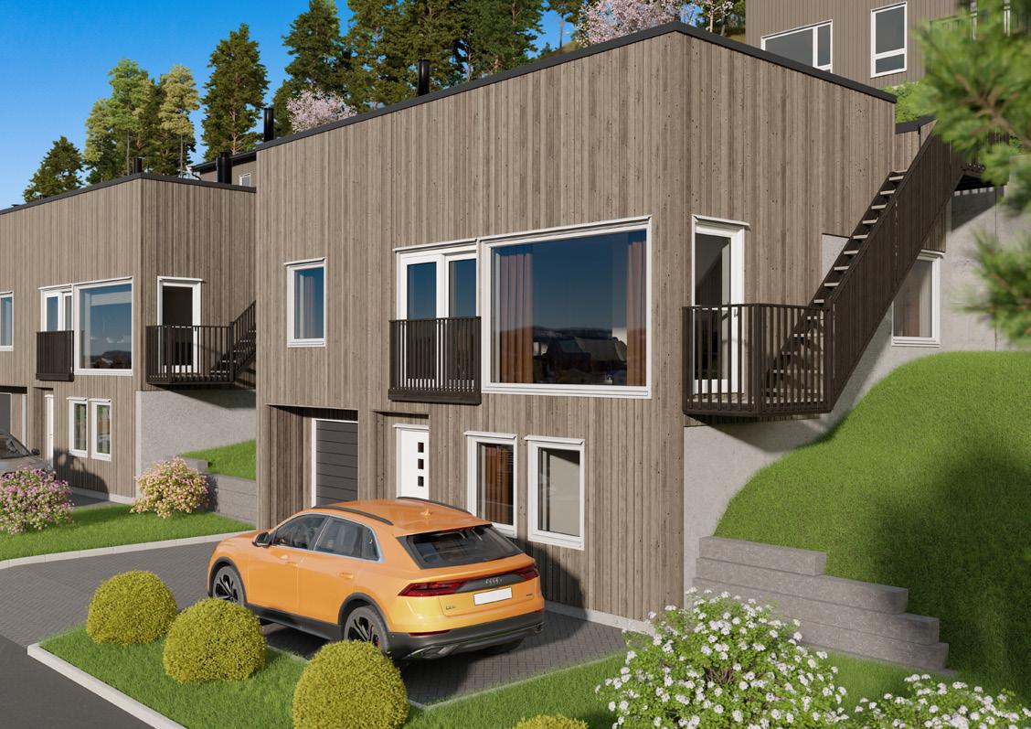 I dette prosjektet vil salgstrinnet bestå av to tomannsboliger på 150 kvm og 115 kvm, i BK3 og BK4. Hver bolig vil gå over to plan med egen integrert garasje, og vil ha takterrasse på hhv. 81 kvm og 63 kvm. Kort oppsummert er dette en utmerket bolig for deg som ønsker å skape et splitter nytt hjem med god plass, sol og utsikt.