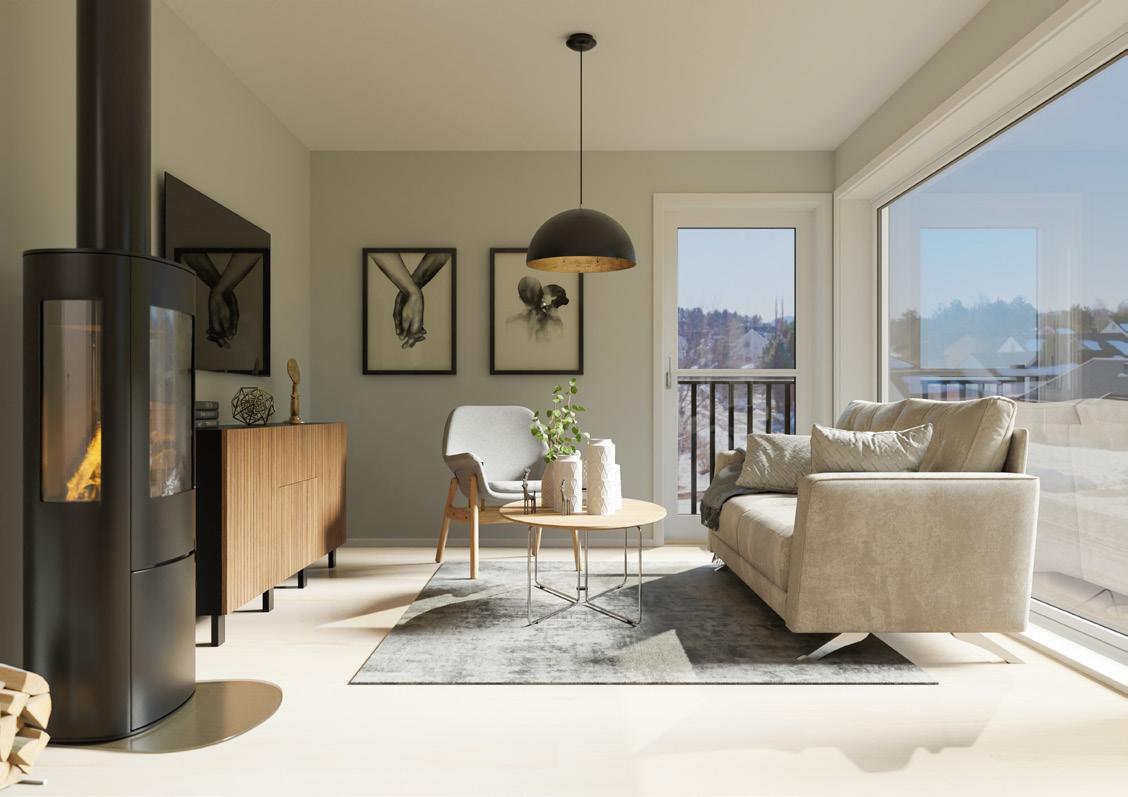 Boligene bærer preg av kvalitet og gjennomtenkte praktiske løsninger med blant annet store vindusflater som sikrer godt naturlig lys i oppholdsrommene.