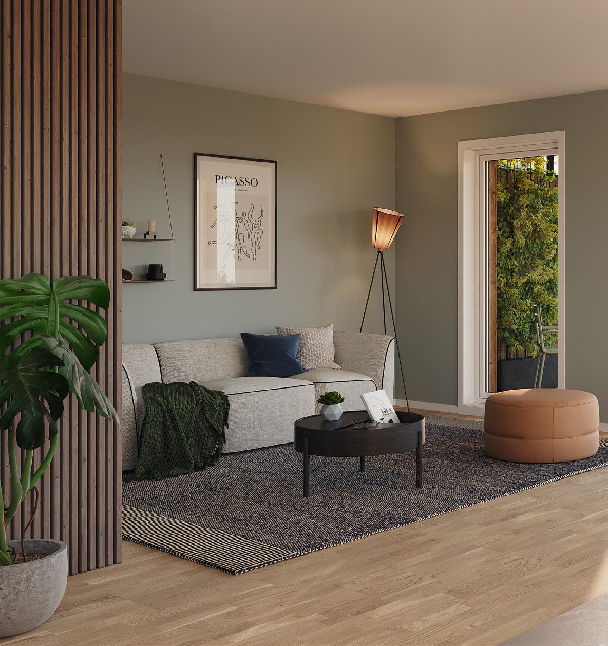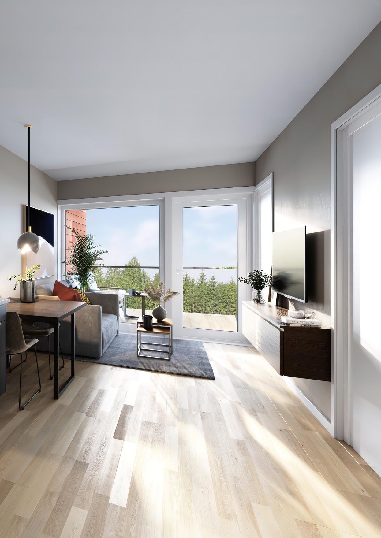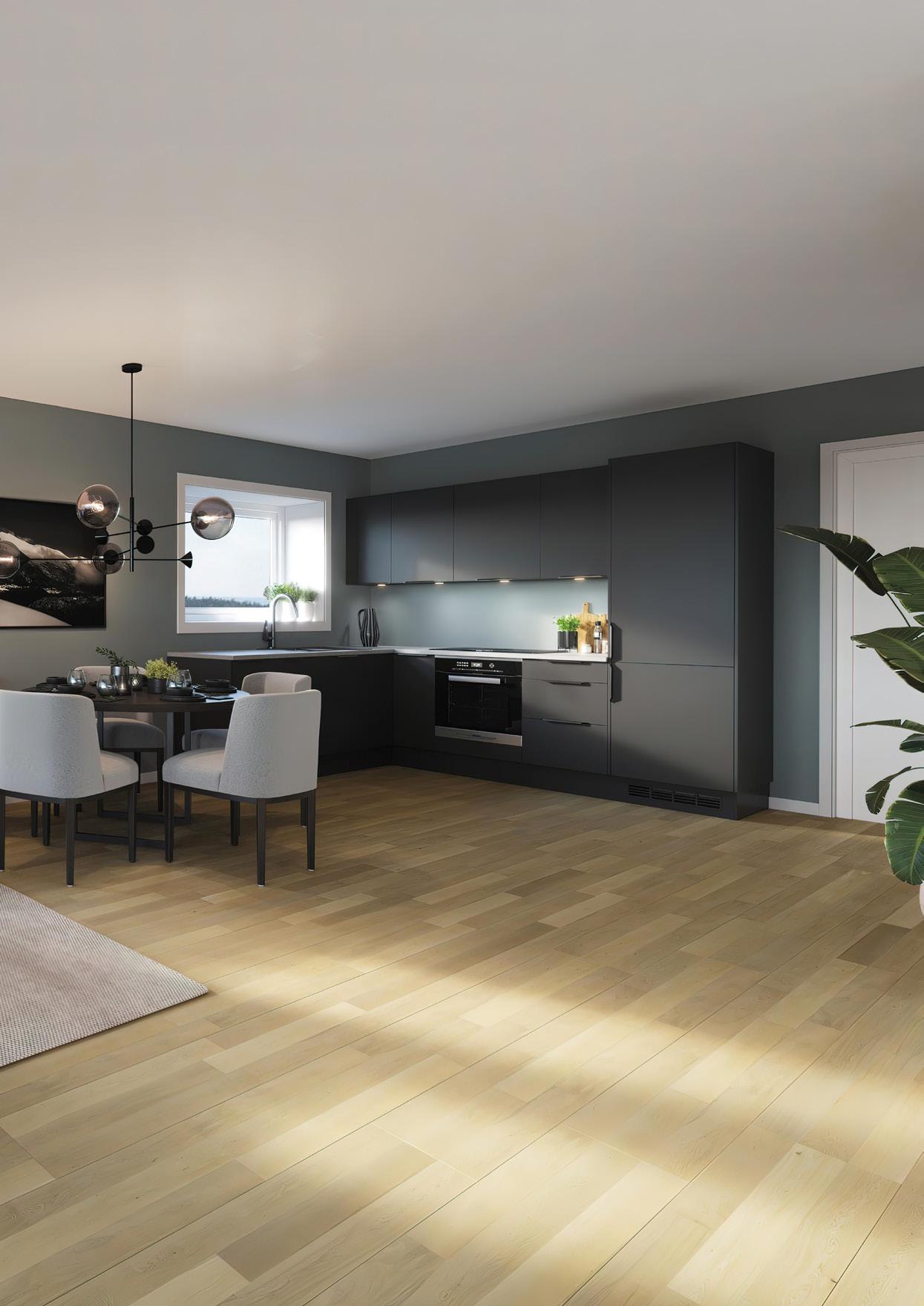 Stue og kjøkken – Leilighet 204 og 304 3D-illustrasjonen er veiledende og kan avvike fra virkeligheten. 25