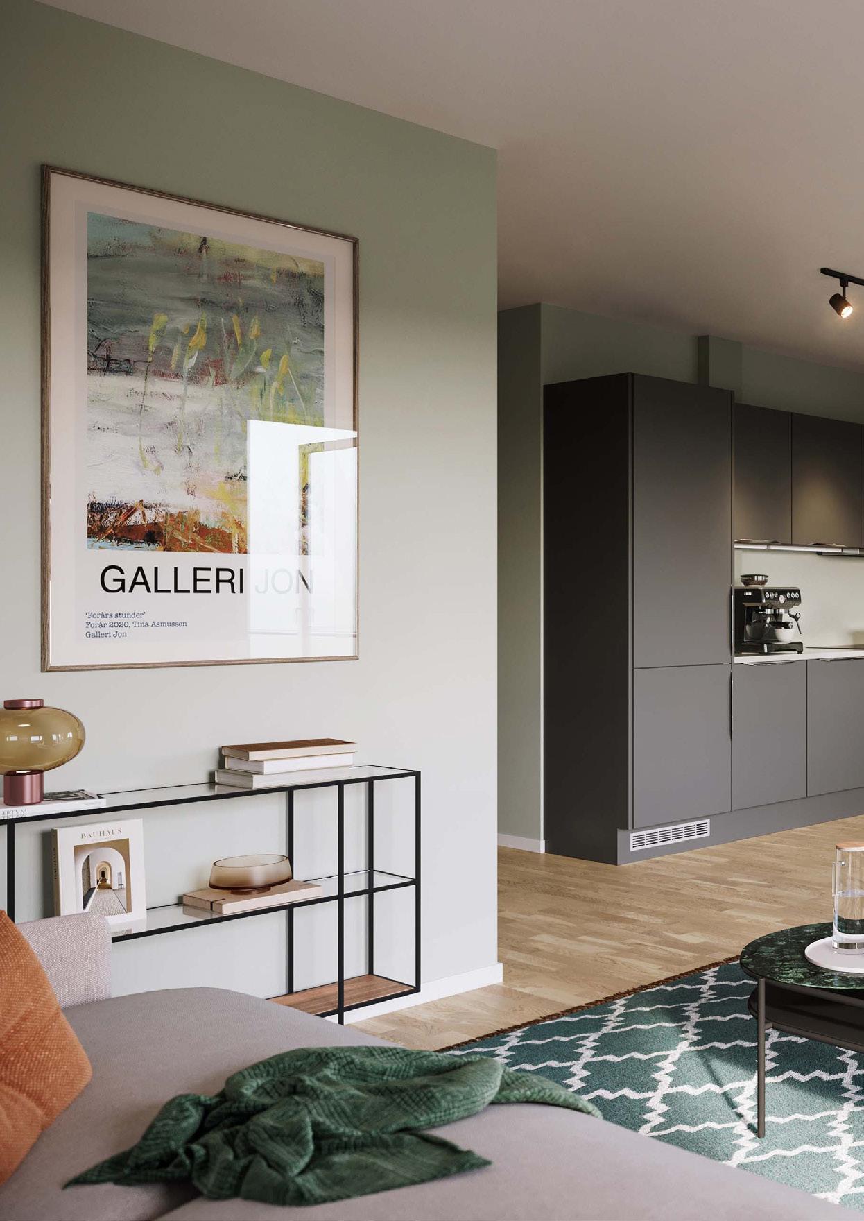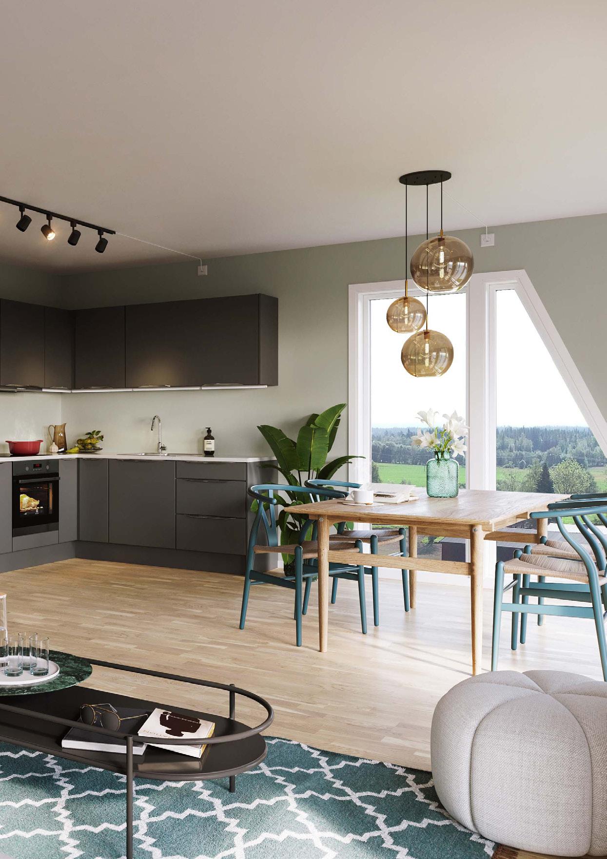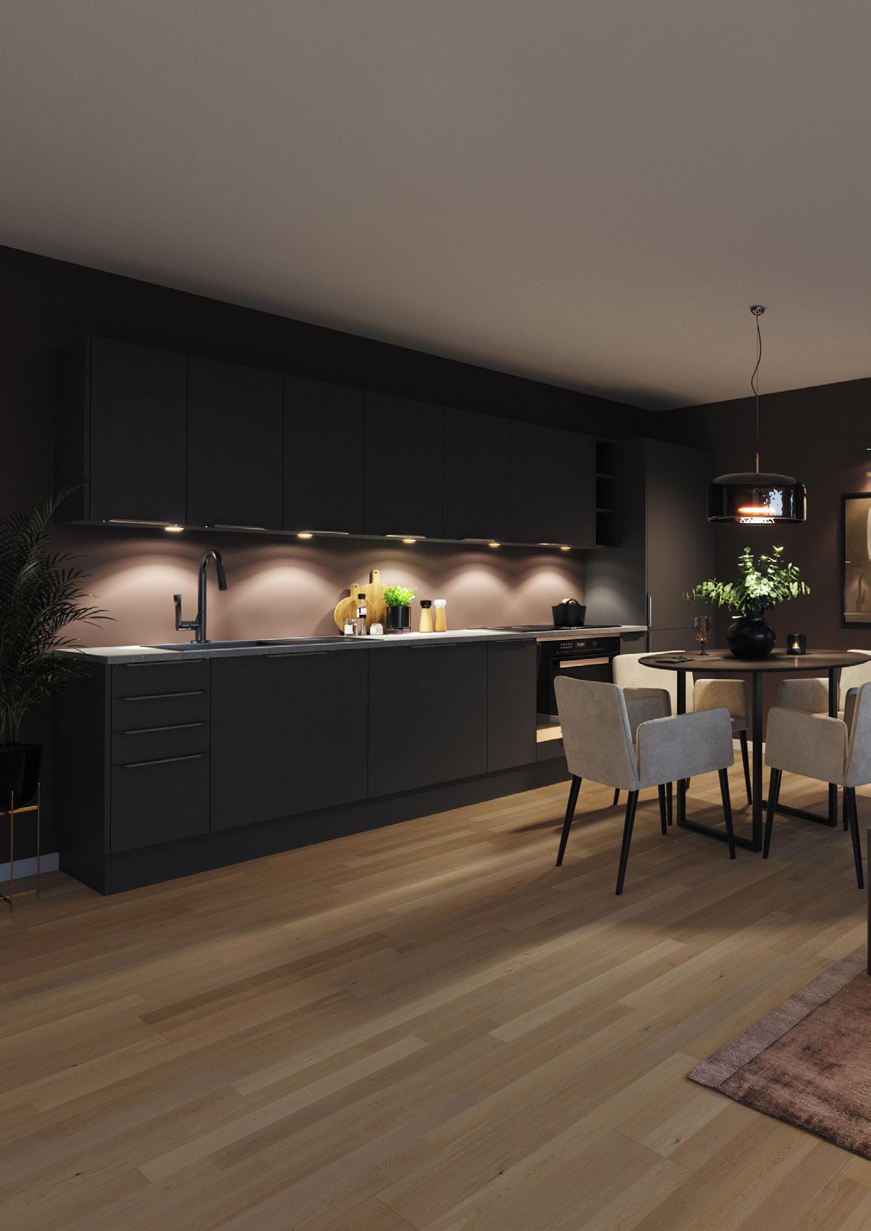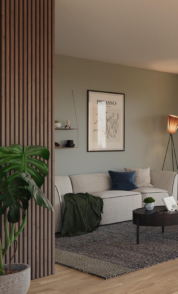 Stue og kjøkken – Leilighet 204 og 304 3D-illustrasjonen er veiledende og kan avvike fra virkeligheten. 25