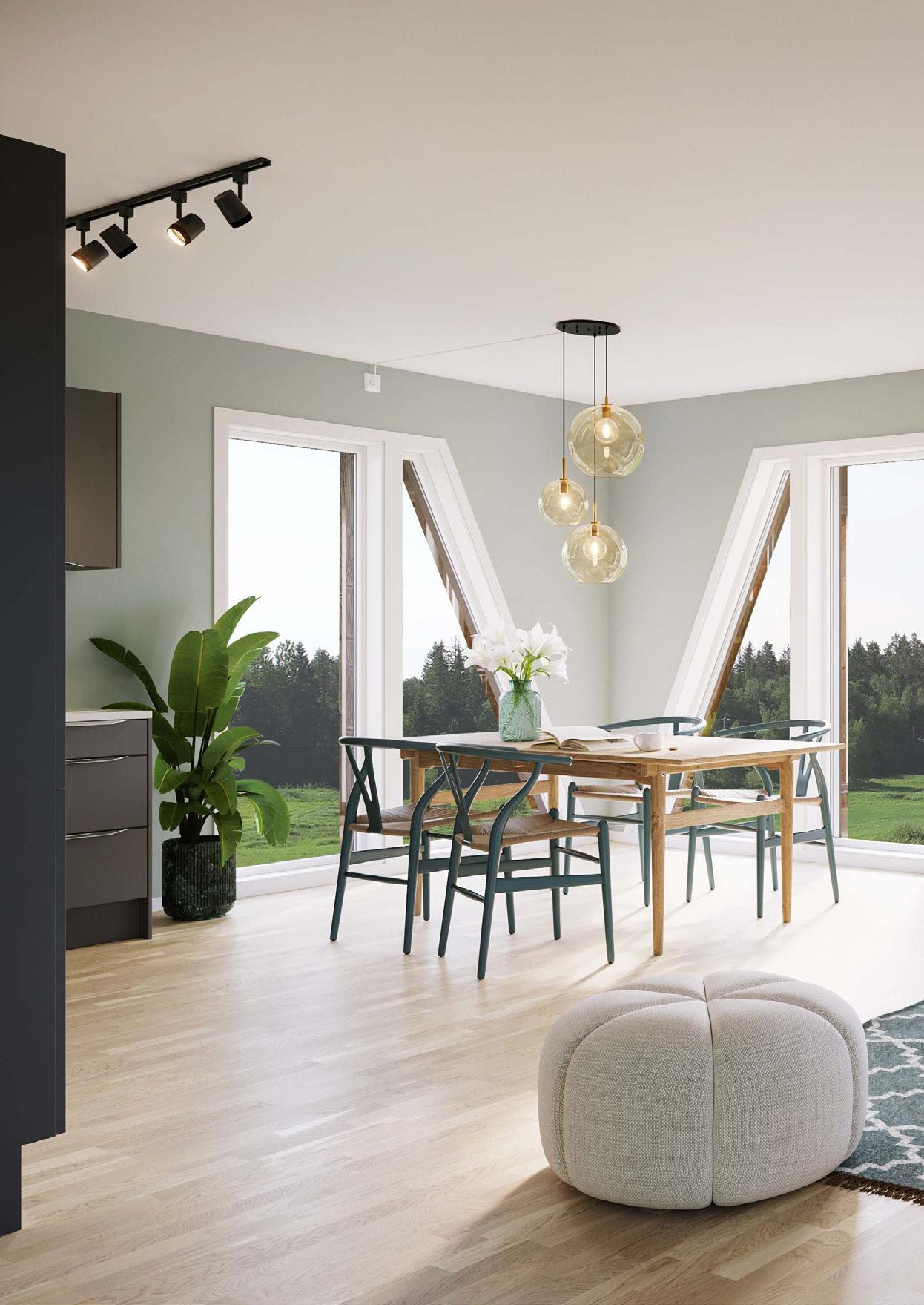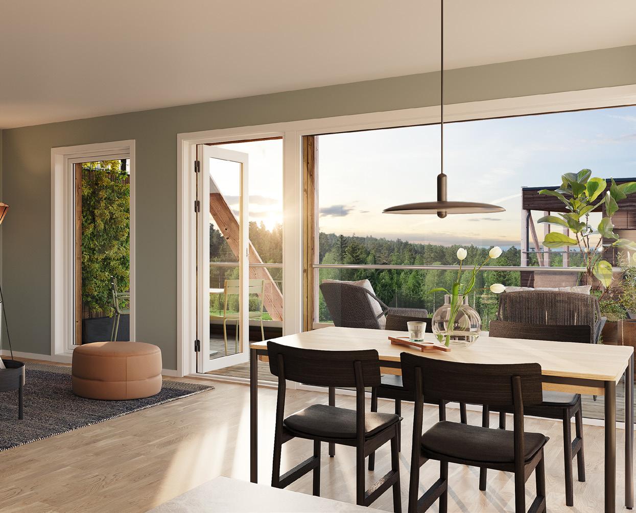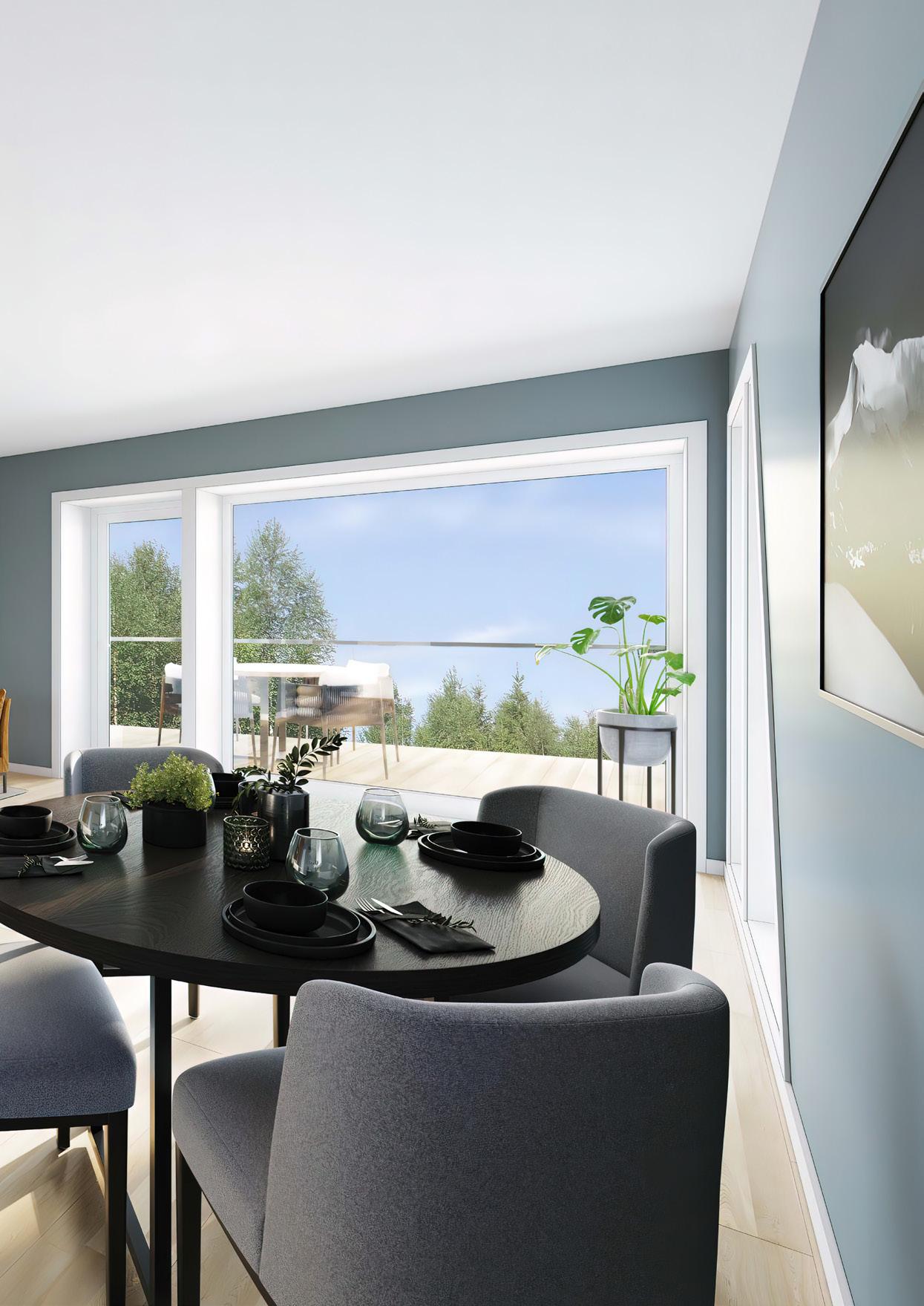 Spisestue – Leilighet 204 og 304. 3D-illustrasjonen er veiledende og kan avvike fra virkeligheten. 27