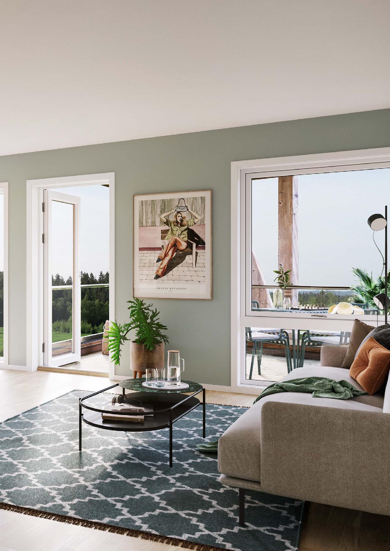 Det tas forbehold om skrivefeil. Alle 3D-illustrasjoner, plantegninger og foto er kun ment som illustrasjoner og vil kunne avvike fra standard leveranse. For eksakt funksjonsbeskrivelse og informasjon om den enkelte bolig, henvises det til leveransebeskrivelse og 1:100-tegninger. Nærområdebilder: Jeanette Bækkevold