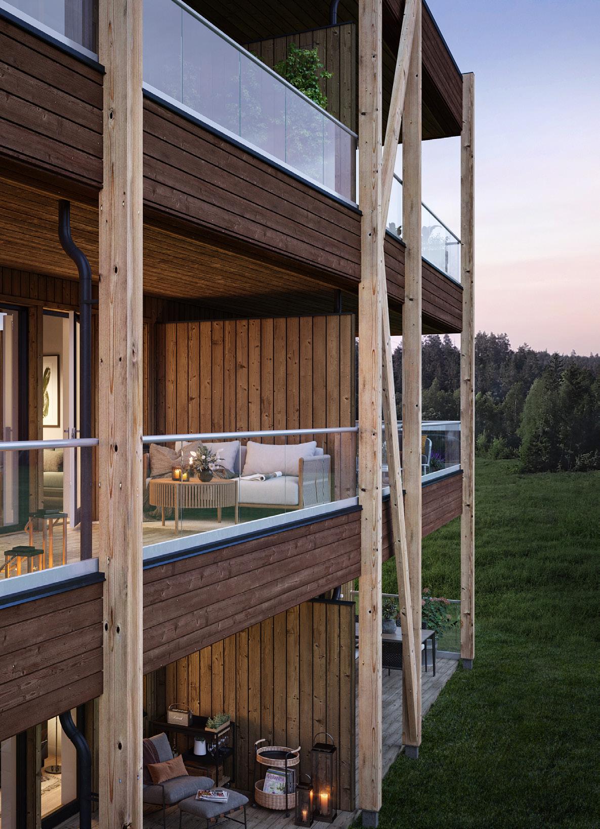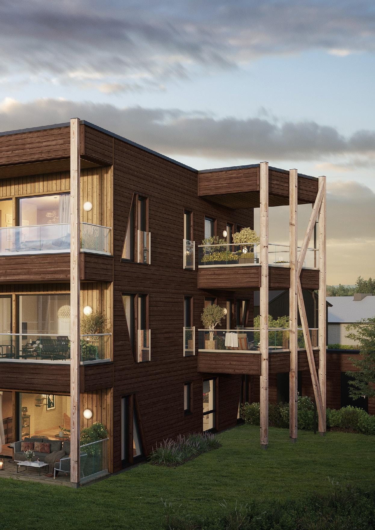 Velkommen til Trehusene på Maura. En moderne boligblokk bygget i tre.