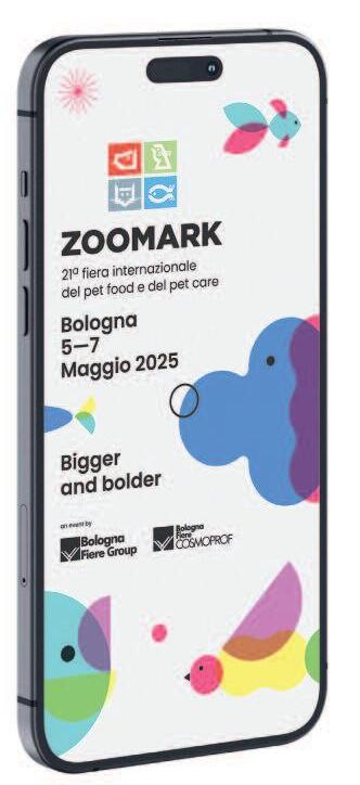 Lunedì 5 maggio s’inaugura una Zoomark che non si accontenta di confermare i buoni risultati, ma punta e va oltre Dopo la b u o n a r i u s c i t a d e l l ’ e d i z i o n e 2023, la fiera si presenta ancora più grande e strutturata, con una crescita del 32% in superficie e del 23% nel numero di espositori Presenta novità organizzative importanti, un numero record di padiglioni, 10, nuove aree speciali come quella dedicata alla filiera industriale del settore pet, eventi che riguardano la cura, la salute e l’innovazione “Zoomark rappresenta un punto di riferimento sempre più solido per l’intera pet industry internazionale, un’occasione unica per esplorare i trend più attuali e costruire connessioni strategiche, soprattutto in una fase congiunturale internazionale che richiede, per essere affrontata adeguatamente, con-