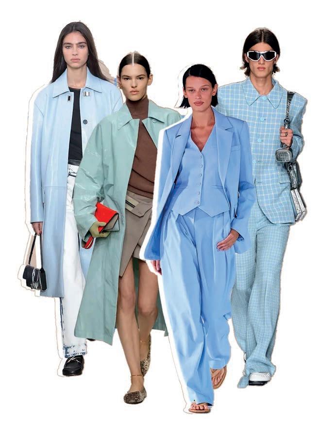 Las tendencias también permiten ciertas licencias cromáticas que ponen el azul en el punto de mira. El azul bebé, en particular, será uno de los que arrase en los meses próximos, en toda prenda posible. Por un lado encontramos irresistibles abrigos acharolados trajes de chaqueta, juega con este matiz a través de las transparencias estampadas.