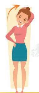 Por encima, coloca la mano derecha sobre la cabeza, cerca de la oreja izquierda, inclina la cabeza ayudándote con la mano para que intentes tocar el hombro derecho con la oreja o hasta sentir una leve tensión en el lado izquierdo del cuello. Evita elevar los hombros. Conserva el estiramiento por 10 segundos y lleva la cabeza al centro para luego realizar el estiramiento hacia el otro lado.