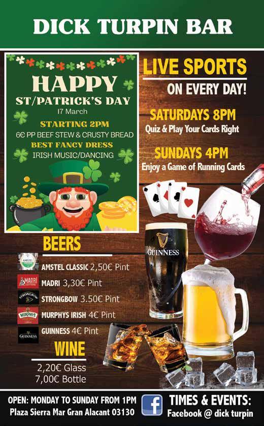 Gran Alacant Properties League Division 1 Played Won Lost Draw For Against Diff Points La Taberna B 14 13 1 0 84 28 +56 26 Pub A 14 11 2 1 80 32 +48 23 Tommy´s 13 11 2 0 74 30 +44 22 Dick Turpins A 15 8 5 2 59 61 -02 18 La Taberna A 13 7 5 1 59 45 +14 15 Miley´s 15 5 6 4 54 66 -12 14 Websters 15 3 9 3 50 70 -20 9 Redz 14 3 8 3 41 71 -30 9 Dick Turpins B 13 3 9 1 46 58 -12 7 Pub B 13 0 11 2 26 78 -52 2 Results up to and Including 19th February 2024 Highest Checkout • Alan - Tommy´s 170 Quickest Check-Out • Juan - La Taberna B 12 Darts