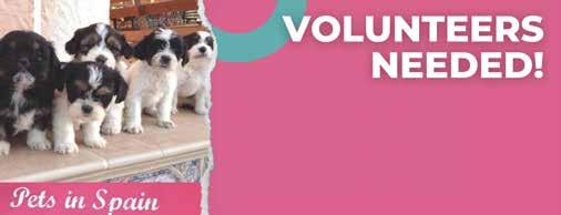 PETS IN SPAIN www.petsinspain.com Pets In Spain is a website dedicated to the re-homing of abandoned and unwanted animals on the Costa Blanca. Whether you are looking to adopt an animal, advertise an animal or if you simply want to know more about taking care of your pet in Spain, please take a look at our site or Call: 645 469 253 or email: info@petsinspain.com K9 CLUB www.k9club.es The Charity is run by a team of volunteers CV-01-043388-A CIF No G-54353743 Tel: 600 845 420 e-mail: k9clubinfo@gmail.com TRIGGER This is TRIGGER a 5 year old large dog He is so affectionate, good on a lead and very obedient ... would make a great companion, and house trained as he has come from a loving home Trigger has a passport and is fully vaccinated. URCO Urco is around 5 years old and has some health issues. He has Megaesophagus and must eat soft food only whilst standing up. Urco has a paralysed larynx and can’t bark. He needs some TLC,he is not on any medication and doesn’t need any special food. These 3 little beauties are around 7 weeks old and looking for forever homes. They have been in a foster home being socialised and are now on solids and using their litter tray. We have called the kittens Pumpkin, Spirit and Cinders and they are in excellent health. They are good around dogs and will make wonderful additions to any family. Could you spare a few hours a week to volunteer at the Pets in Spain charity shop on La Marina Urb? If so please CONTACT US !!!