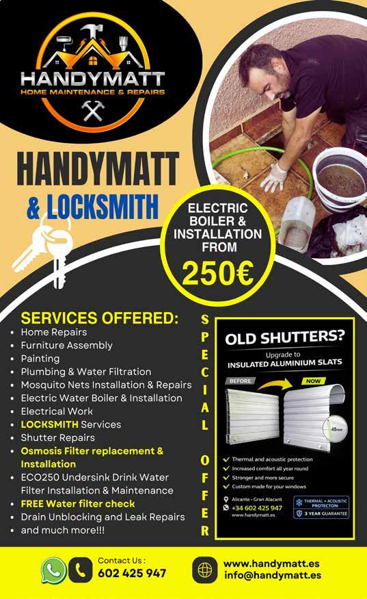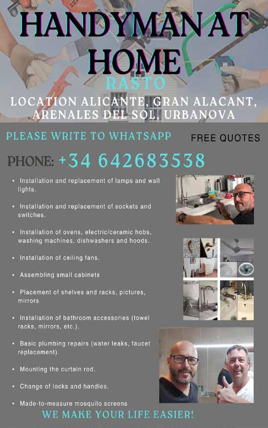 Right now, as it says above, I work as a plumber in the Alicante area, covering from El Campello to Guardamar. I focus mainly on urbanisations like La Marina (lots of customers here!) and Gran Alacant, where I’m putting into practice the project I mentioned earlier. I’m offering a service designed especially for English-speaking residents, bringing that same professional approach I learned in Australia.