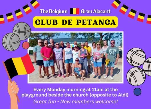 BELGIUM GRAN ALACANT CLUB DE PETANCA at 11:00 on the playground beside the church (opposite Aldi) . New members welcome.