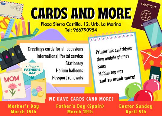 For more info: Whatsapp 711 084 903 C/Madrid 109, La Marina | Open Monday, Wednesday & Friday 10.30am to 1.00pm