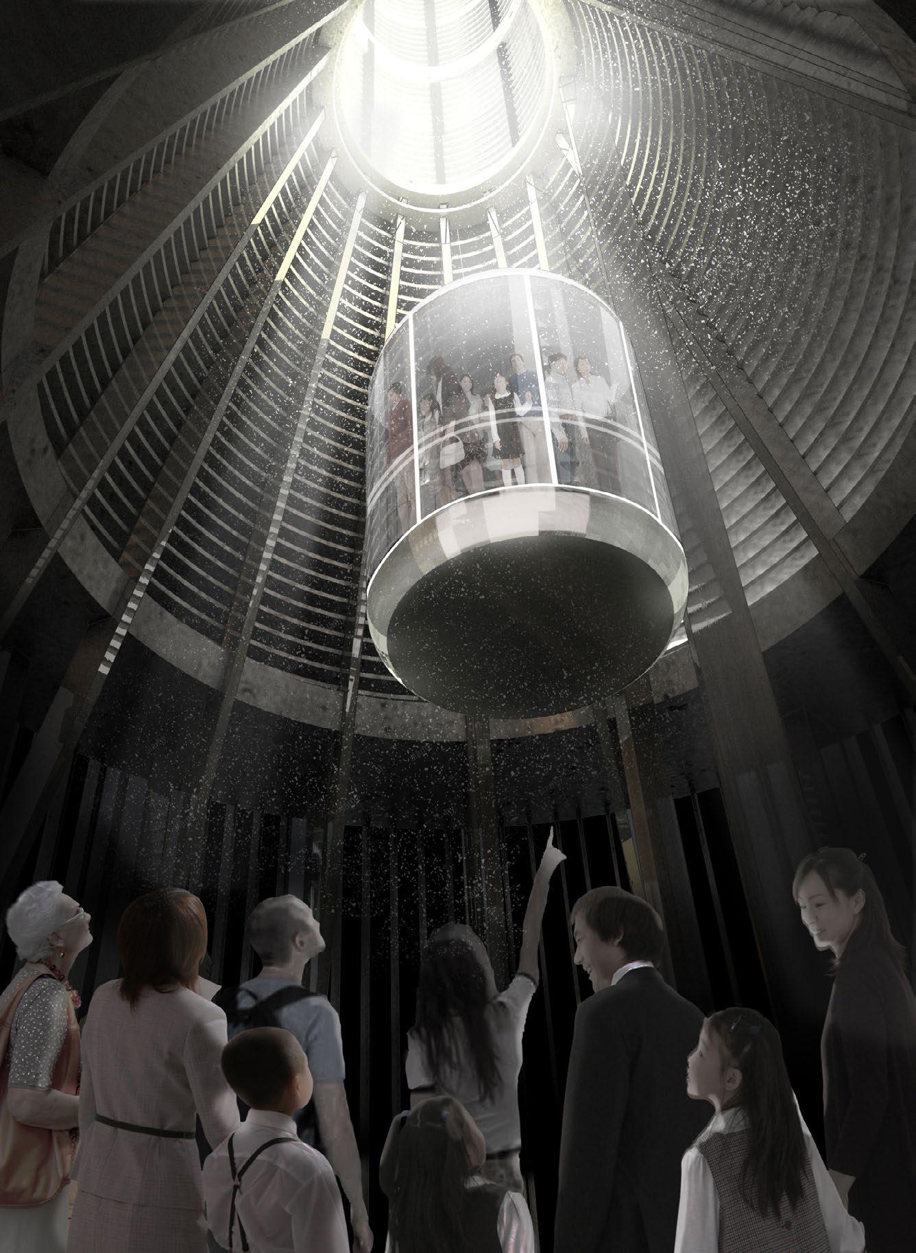 The funeral center consists of 3 main spaces: funeral market, funeral hall and columbarium. A central ramp will cut across the 3 spaces, allowing tourists to witness the different ritual processes, commodified as part of Japanese culture.