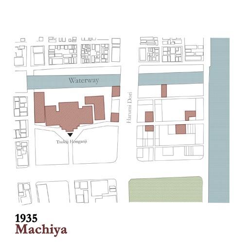 The speculative scenario imagines a funeral center to be built in the emptied plot that will be run by the temples association of Tsukiji. Due to the large volume of tourists crowding the area, the funeral center will be designed to not only provide ritual services but also tap on the opportunity to become a touristic spectacle. At the urban scale, the funeral center will be located along the existing Teramachi axis. The building massing does not only capture visitors from the expanded Tsukiji Station but also resembles the fan-shaped form of the previous inner market, evoking an uncanny feeling as it now replaces the role of inner market as the new iconic image of Tsukiji.