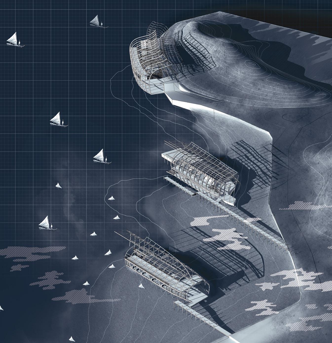 The project therefore aims to bring people closer to water, not just for the sake of nostalgia, but also to allow people to understand their high reliance on water. Rather than treating water as an economic resource, the project highlights its pleasurable aspect. The site is especially apt as people used to sail along the Pasir Panjang coastline, using the traditional Kolek and Jong. A boat building workshop facility is proposed near the tip of Labrador Park where the public can observe and learn the process of boatbuilding that has long disappeared from Singapore. At the same time, they can also learn to build their own boats and use them to sail away to the sea. Boat does not only become an object that evokes memories and nostalgia but also serves as a tool for people to escape the confinement of such industrial barricades.