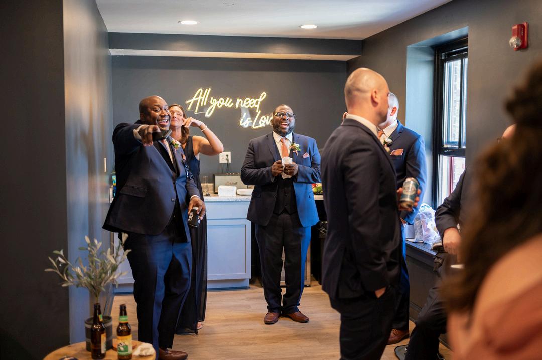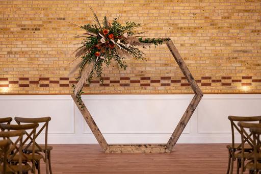 Ourboutiquehotel-inspiredCocktailLoungefeaturesabeautifulblushbarwithahandcraftedsolidmapletop.Thisinvitingspacealsoincludesagallerywallwiththreeframed andlitdisplays,perfectforshowcasingyourengagementphotosduringyourevent.