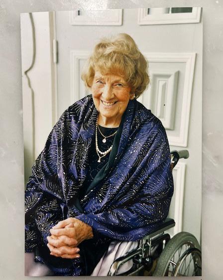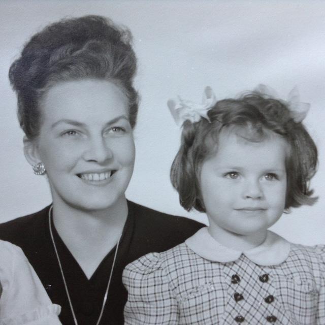 på Paulines mormor som ung, med hennes mamma som barn bredvid.