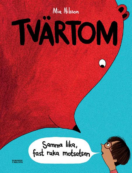 Vad är en motsats? Samma lika, fast tvärtom! Lång – kort, snabb – långsam, torr – blöt. I Mia Nilssons värld rymmer motsatsparen så mycket mer än vad läsaren först kan tro. Fåglar på rymmen, Olle som plockar blåbär och en glasskö som ter sig som oändlig.