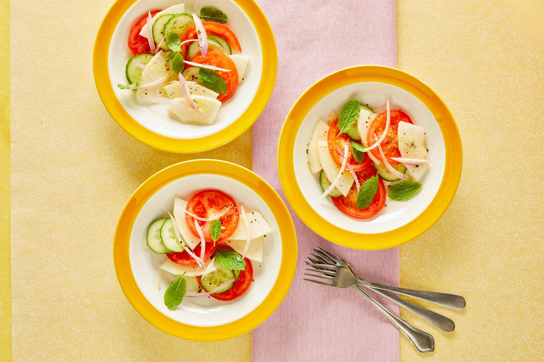 Lekker zonder vlees Voeg aardappelen, pasta of bonen toe aan je salade om er een vullende vega-maaltijd van te maken.