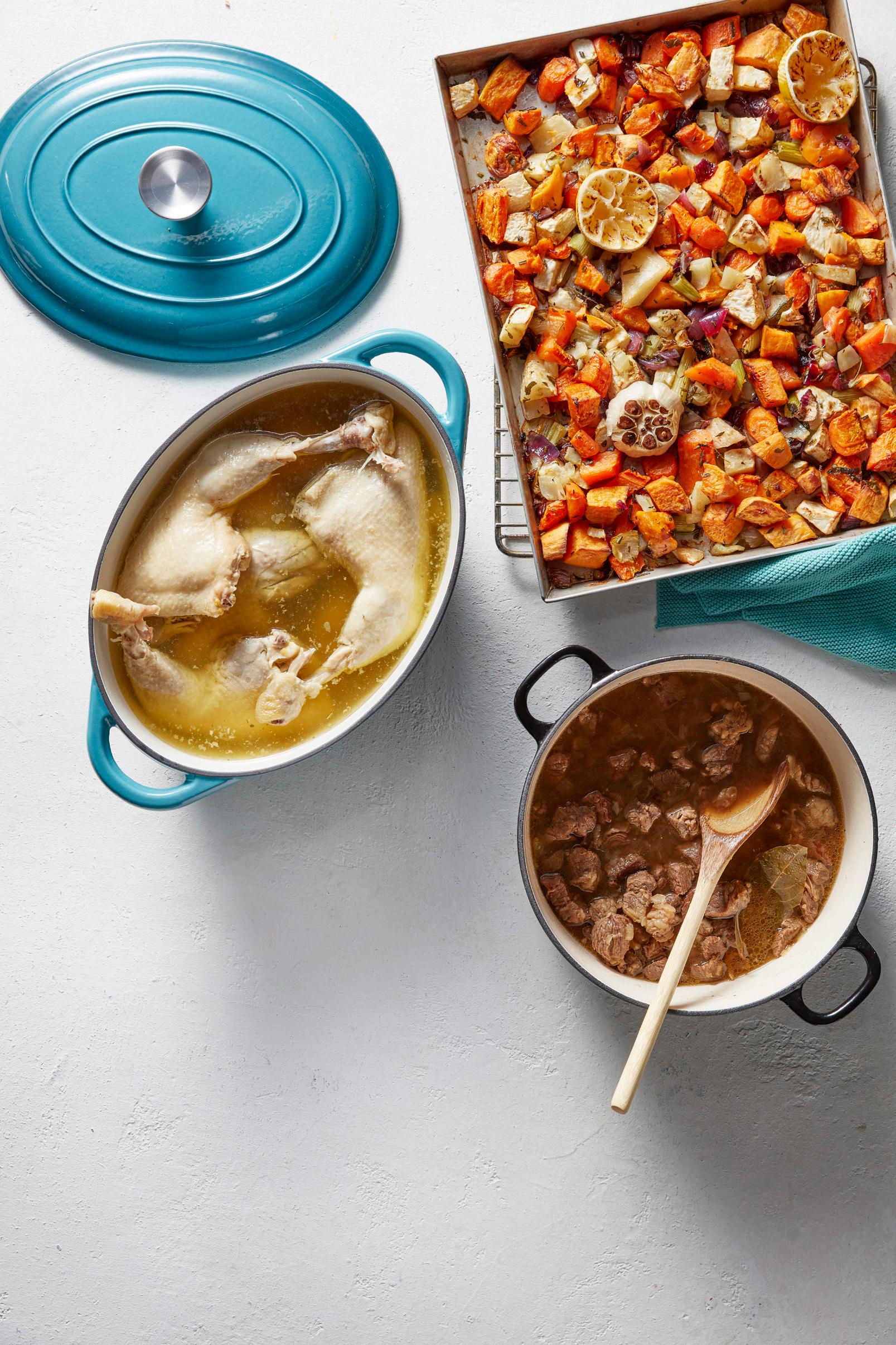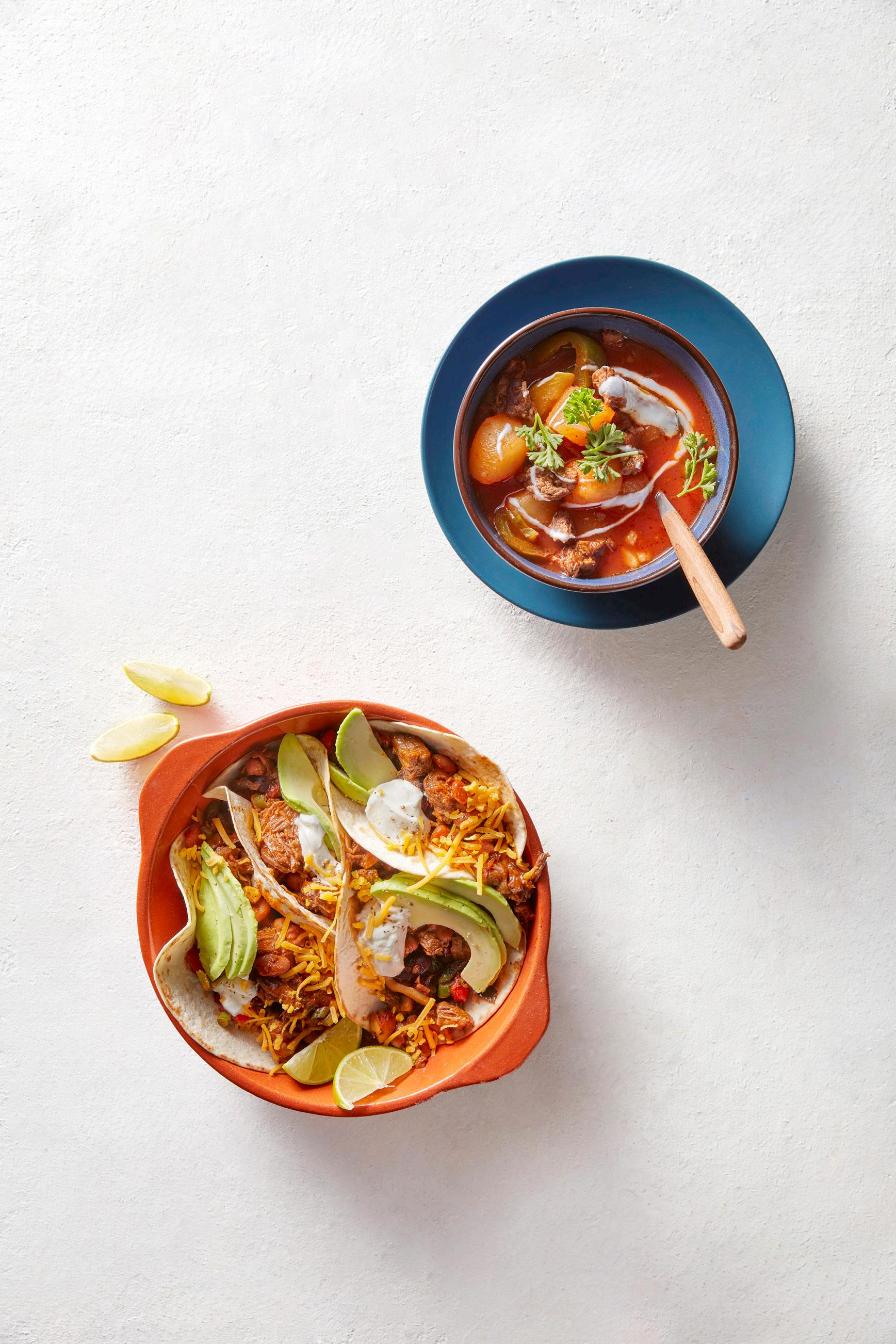 Een goed begin is het halve werk, dus daarom gaan we aan de slag met meal preppen. Zo hoef je maar één keer aan de slag in de keuken, en kun je daarna drie keer genieten. Wij hebben het denkwerk al voor je gedaan op pagina 87. Maak bijvoorbeeld eerst de basis voor het stoofvlees in het weekend, en zet later in de week een snelle goulashsoep en pulled beef taco’s op tafel. Hoe makkelijk is dat!