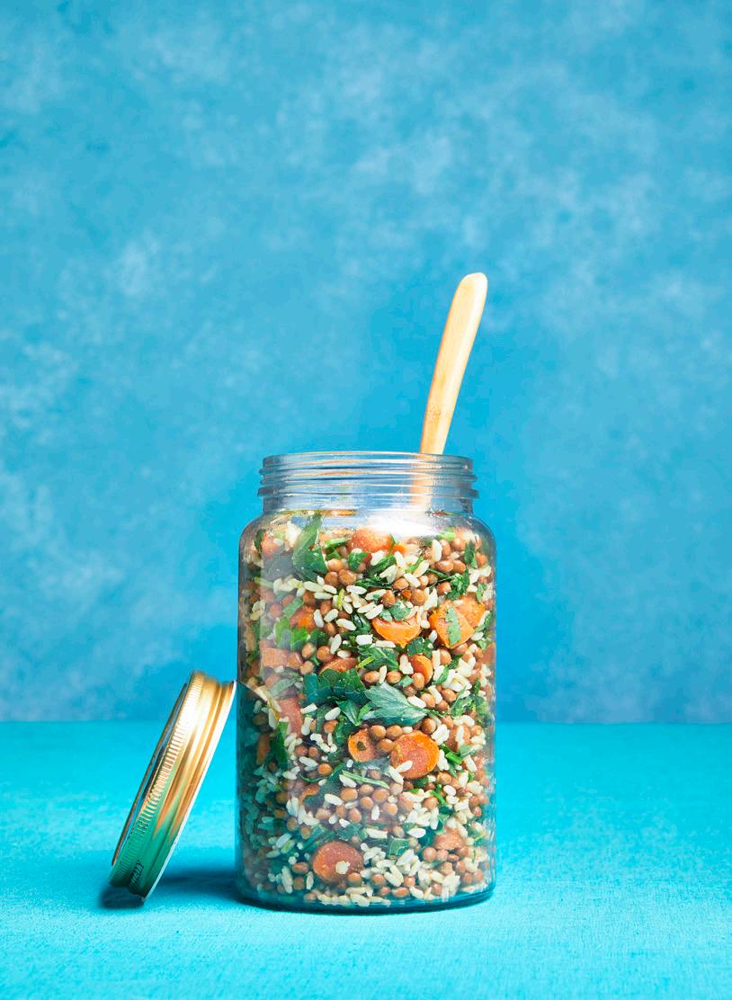 Rijstsalade met linzen en gebakken worteltjes a f h