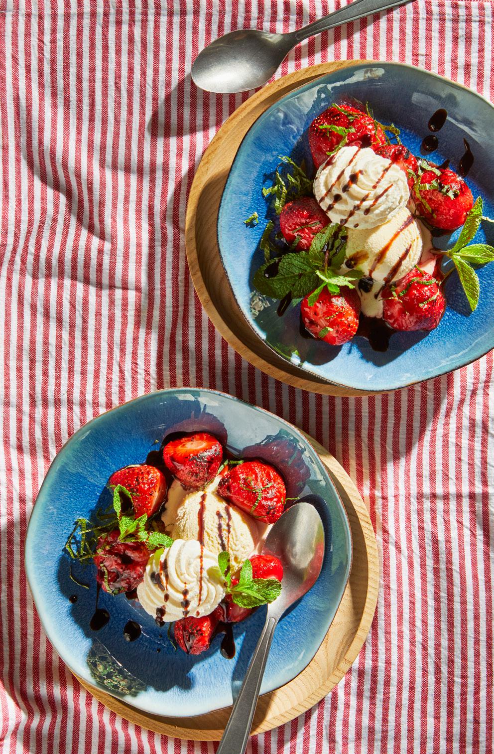 3 Bestrooi met de munt, snijd in stukken en serveer.