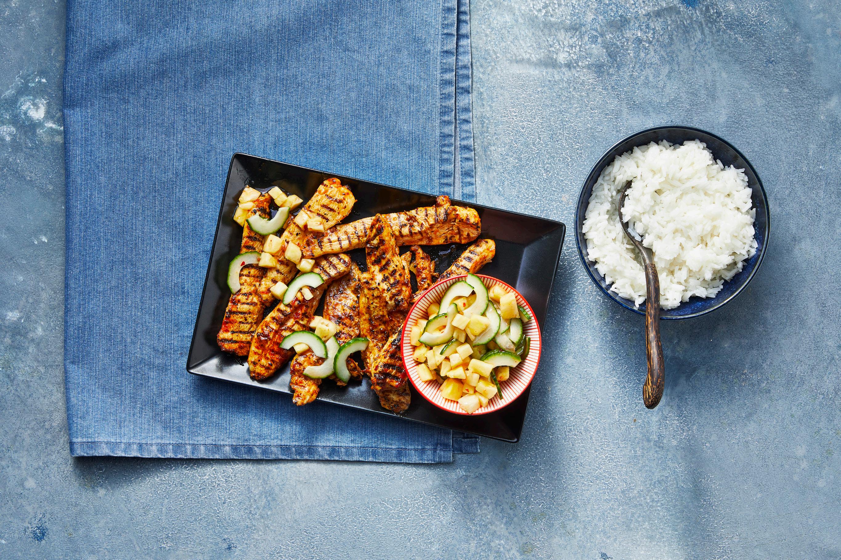 Chik’n Filet van de BBQ met watermeloensalade, gepofte aardappel en maïs a f h