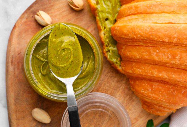 TikTok en Instagram staan er vol mee: pistachepasta! Deze groene variant op hazelnootpasta is echt om je vingers bij af te likken. Lekker op een broodje of als dip bij de borrelplank. Zo maak je het zelf: verwijder eerst de vliesjes van 200 gram pistachenoten door ze 2 minuten te weken in heet water. Zo geef je de pasta die prachtige, groene kleur. Giet de noten af en wrijf de vliesjes eraf in een theedoek. Vermaal de noten 5 tot 10 minuten in een keukenmachine tot een gladde pasta. Je kunt eventueel een klein snufje zout of een beetje suiker toevoegen voor het vermalen.