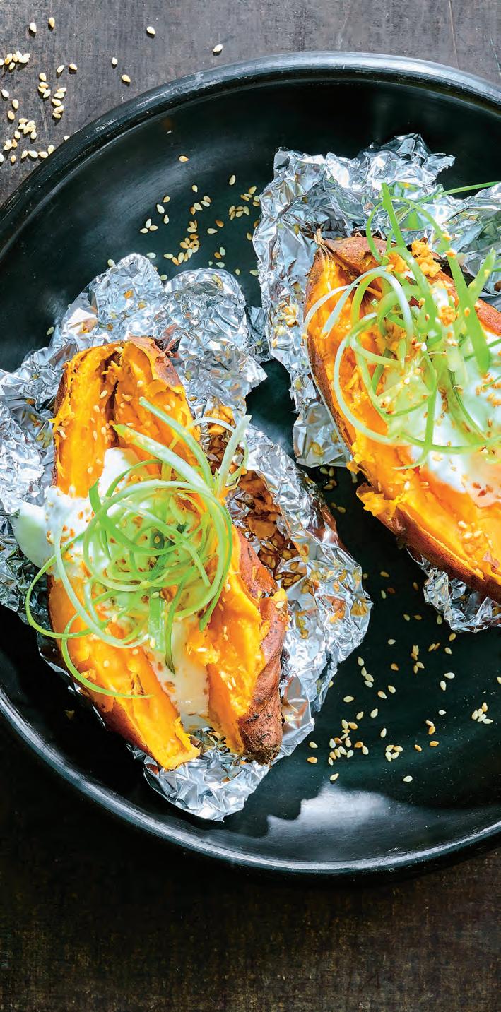 Of je nu in je achtertuin of op het balkon grilt, er is wat mij betreft niets beters dan de geur van gegrild vlees, vis of groente en het geluid van lachende mensen om je heen. Naast de traditionele gerechten kun je ook eens wat verrassends op het rooster leggen. Wat dacht je van een hele bloemkool (pag. 43)? Of een paar Aziatische biefstukspiesjes (pag. 50)? Zelf ga ik deze maand voor een oosterse runderburger met naanbrood (pag. 61).