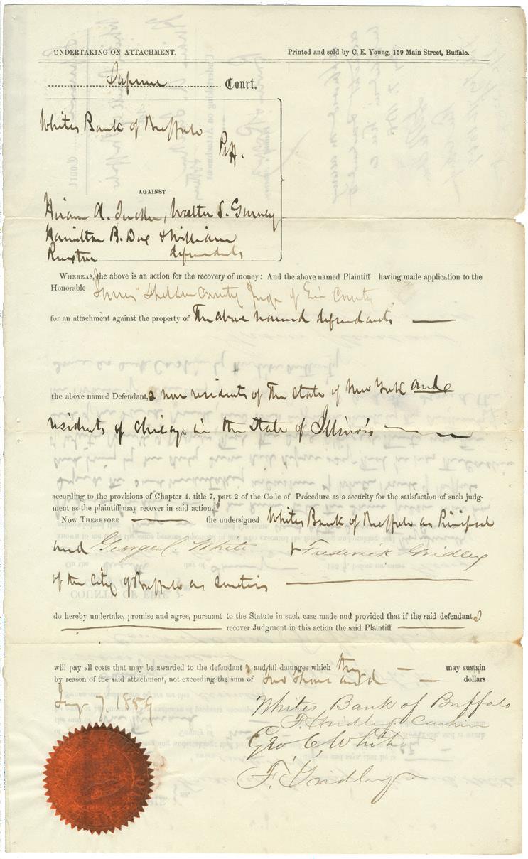 Early in his storied career in politics as mayor of Buffalo, governor of New York State, and then twenty-second and twenty-fourth president of the United States, Grover Cleveland served as the Erie County commissioner of deeds. At right is a document containing Cleveland’s first signature in that capacity, dated January 1859.