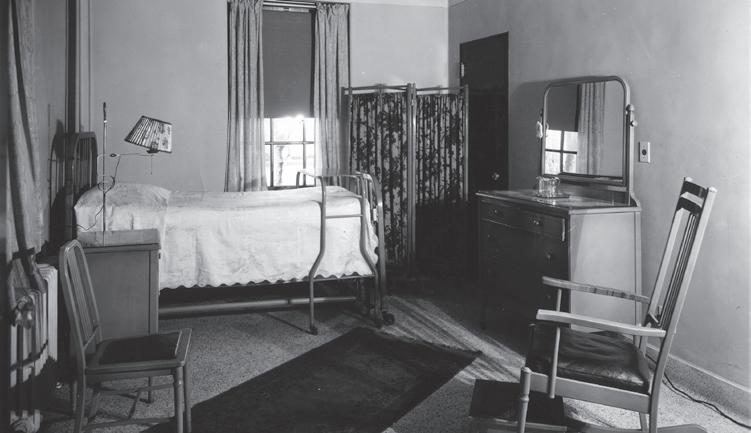 residents of the NHDVS who suffered from lung or respiratory problems. Their transportation costs to the sanitarium were paid for by the NHDVS. n According to NHDVS annual reports, “Preference was given to soldiers and sailors suffering from sub-acute and chronic rheumatism, neuritis, the early stages of interstitial nephritis, skin disease, and morbid conditions due to defective elimination. Cases of pulmonary tuberculosis where the general condition is such to justify a reasonable hope of recovery or improvement under favorable conditions shall be admitted to the Sanitarium. Applicants admitted for such time only as may be necessary to effect a cure or relief of the disabilities from which he is suffering. When a member has received all benefits that can reasonably be expected from the special treatment and various forms of hydrotherapeutics here available, he will be required to take his discharge from the Sanitarium or accept transfer to one of the Branch Homes. 336 beds could be increased to 416 whenever necessary.” n