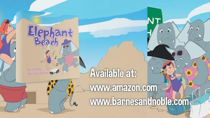 Soon, though, the girl becomes intrigued by the elephants’ playful nature. She still tries to read, but their games continue and can’t be ignored. Having a change of heart, the young girl joins in when the elephants play volleyball. She surfs huge waves and even helps the elephants when they are scared.
