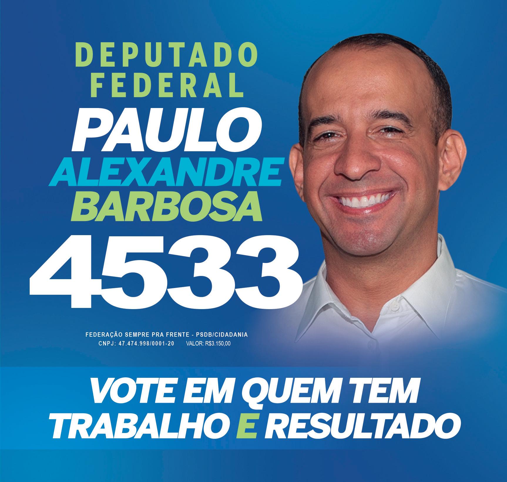 Fernando de Maria DA REDAÇÃOAo encerrar o mandato com uma popularidade supe rior a 80% em 2020 e ter feito seu sucessor, o atual prefeito Rogério Santos, o ex-secre tário estadual e ex-prefeito santista Paulo Alexandre Barbosa (2013-2020 – PSDB) se destaca na disputa por uma vaga na Câmara Federal em Santos.