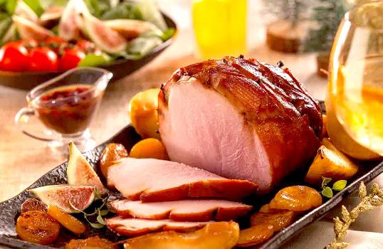 1 mini tender sem osso 5 peras william 12 damascos meia xícara (chá) de melaço 20 cravos-da-índia para decorar