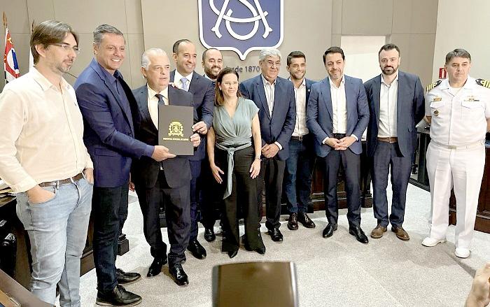 Autoridades federais e do Município participaram do ato de assinatura da cessão da área do Porto, que será utilizada dentro do plano de revitalização do Centro Histórico de Santos
