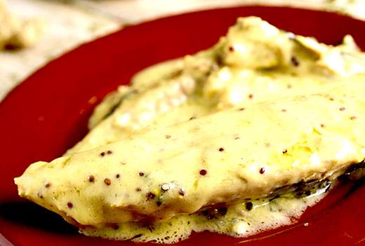 Em uma panela, aqueça o azeite e refogue a cebola. Junte a maçã e a manjerona e cozinhe por cerca de 5 minutos. Retire do fogo, acrescente a pimenta e o creme de leite, misture bem e despeje sobre os filés. Sirva polvilhado com as sementes de papoula. FONTE: RECEITAS NESTLÉ