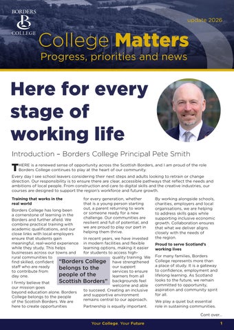 Borders College is located in the Scottish Borders and offers a wide range of courses, from an introductory level through to advanced courses at Higher National level, including the full range of apprenticeships courses, from modern apprenticeships to foundation apprenticeships. We also provide a large number of industry-based training courses for businesses throughout Scotland.