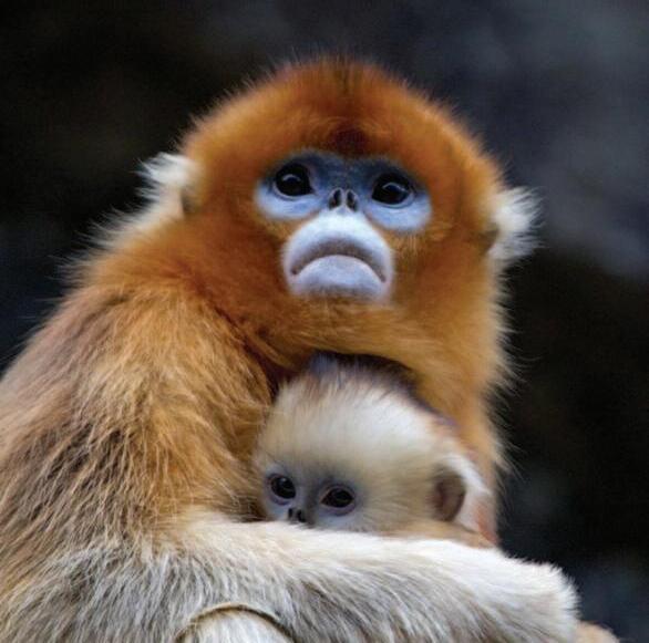 These blue-faced monkeys can withstand cold temperatures better than any other living primate. Found in cold, mountain forests, family groups huddle together for warmth during freezing winter nights.