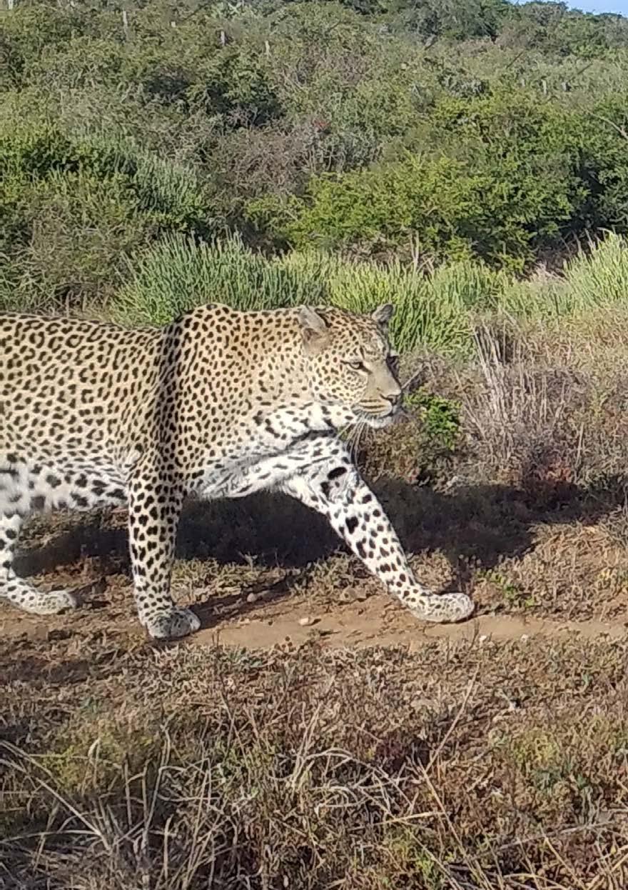 Mowgli is also thriving, and maintains a private demeanour – preferring the seclusion of the thickets and bushes. Occasionally, during our routine fence inspection, we hear him quietly following us, without revealing himself. Like many leopards living in the wild, he prefers to stay hidden.