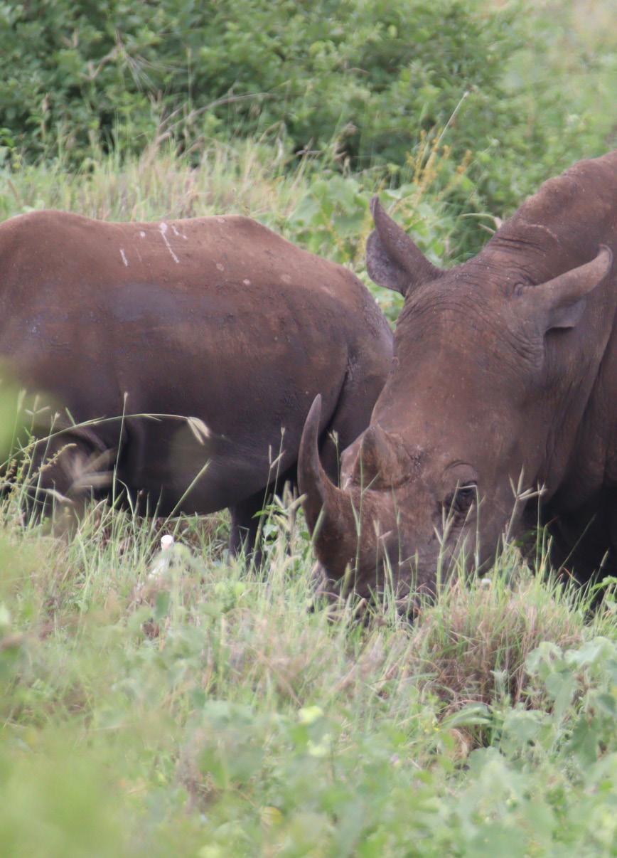 Jamhuri welcomed her second calf in December 2022, followed by her third in April 2025, a spirited youngster who rarely leaves her side. Today, Jamhuri confidently roams Meru’s rhino sanctuary safely, moving together with her calf with quiet synchronicity. They are occasionally joined by familiar companions, including her brother Tiapar and two other males, Obama and Gakuya.