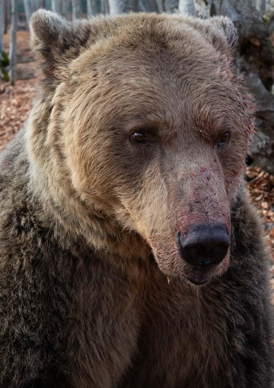 In the weeks leading up to his winter sleep, Kyriakos was wonderfully energetic and determined to fatten up. He devoured astonishing quantities of plums, carrots, and apples, leaving his caretakers speechless at the speed he polished them off. If you look closely, you can see remnants of a strawberry feast smooshed across his muzzle and fur. By late autumn he looked magnificent – bigger, rounder, and more imposing than ever, a true gentle giant preparing for the cold.