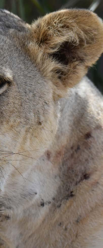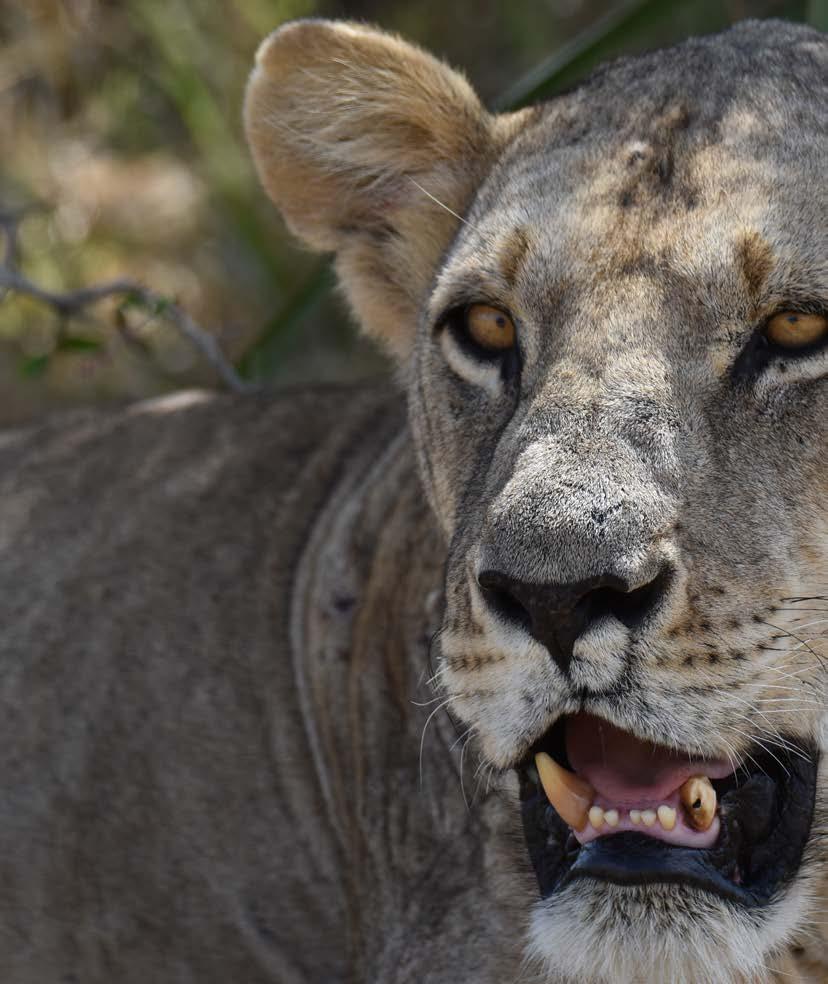 Lionesses typically live to be 10 to 14 years in the wild. At 11 years, Liz is the oldest lioness in the pride and carries the hard-won wisdom of countless seasons. The monitoring team and tourist guides – who show visitors around the park and support our work – have grown fond of her, recognising her instantly by the distinctive scar beneath her nose, a natural mark that tells its own story of survival (as you can see in her photo).