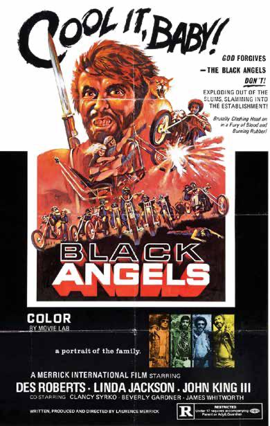 So sets the rebellious tone of the critically mixed 1970 biker romp The Black Angels, a lesser-known but relevant slice of the vintage “Bikersploition” era. What’s surprising about the film is despite the title’s nod to “Blaxploitation,” the drama/ action primarily concerns a lily-white biker gang: the deliciously monikered Satan’s Serpents.