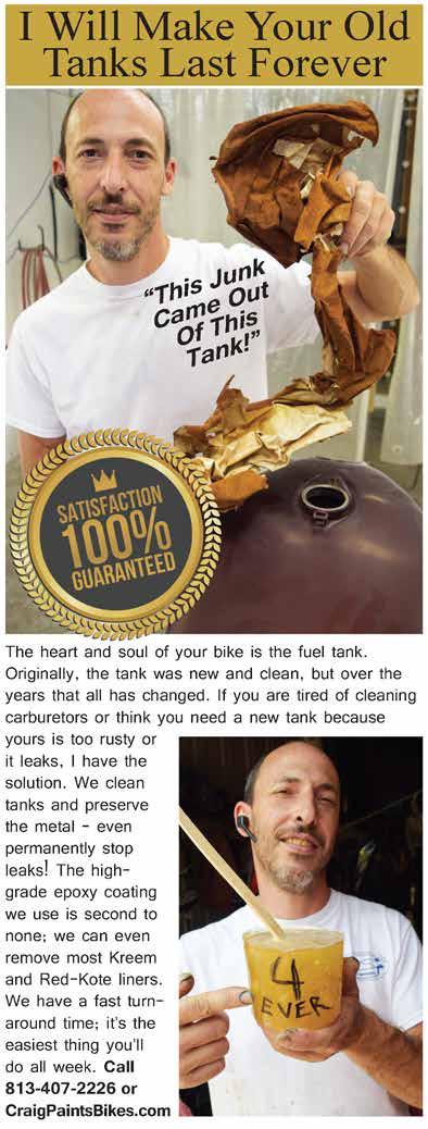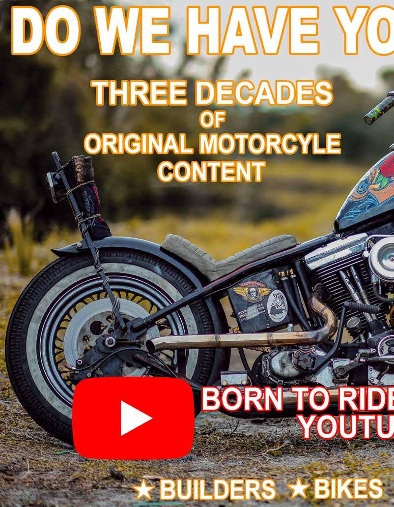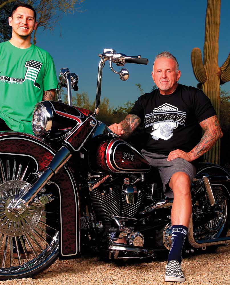 For real, Rob. That’s what happens when you have the world’s best boss. To see the entire video of how this Dirtytail came to be, check out youtu. be/L3jxGeBPjuA. For info on John Shope’s parts, products, swag and custom bikes, visit www. dirtybirdconcepts.com or call 623-465-5263. And watch John play the bad guy in the new biker film “Rough Boys”, coming next year.