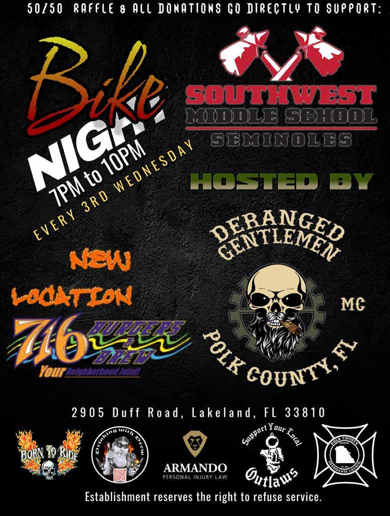 & Bike Rodeo. This is one of the largest and most popular events during Bike Week! Gates open at noon. Witness many ‘Ol School bike rodeo games such as slow race, jousting, board run, and our most popular event, The Shovel Race. There will be food, vendors, 50/50, music, and so much more! $20/pp includes lunch.
