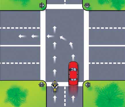 You are riding along in the left lane of a one-way street, with a car ahead of you on your right. As the two of you enter an intersection, the car swerves left across your path to make a turn.