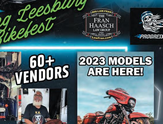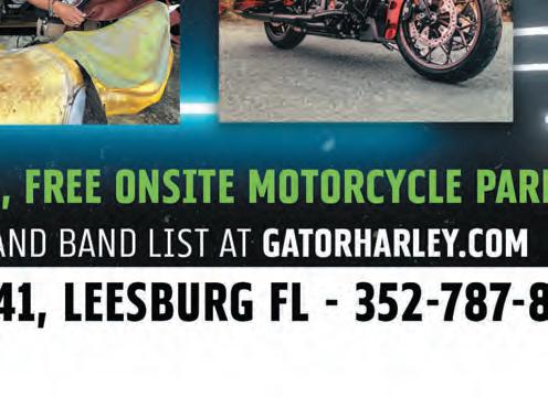 Our cover this month gives the nod to our friends at Gator Harley-Davidson for their kickass Bike Rally on April 27th through the 30th as part of Leesburg Bikefest. Check out all the new 2023 Harley models and get four days of killer live music as well as over 60 vivacious vendors and three biker bars to wet yer whistle. You’ll find Gator’s on Highway 441 in Leesburg!