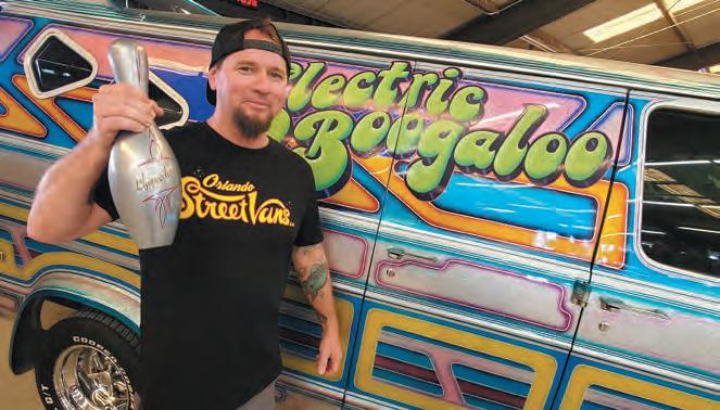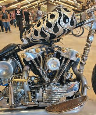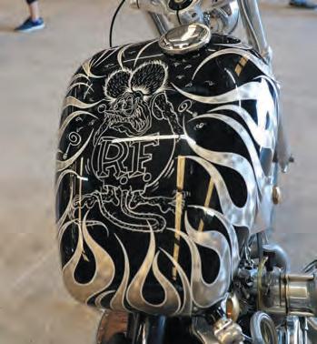 end that was awarded to our People’s Choice winner of the ride-in bike show and special kudos to Letterfly for creating the badass bowling pin trophies for our winners. Read up on what this stellar airbrush artist is up to in this issue.