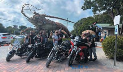 Hemingways favorite saying was “There is no friend as loyal as a book” Many of us say “There is no friend as loyal as Born To Ride Magazine. One of the riders and let’s just call her “Spread Sheets” had sent all of us a spread sheet of potential stops to visit on the way from Florida to Key West. We stopped at them all.Starting with Alfredo’s (Key Largo) for breakfast where you can order Red Wine for breakfast. Then we rode to Rain Barrel Village (Islamorada) and had a picture with Betsy the lobster and then on to Robbies. (Islamorada) Where we all signed a dollar posted it on the bar ceiling. We participated in feeding the Tarpons where you can literally put your hand in their mouth and get attacked by Pelicans doing so. Then we rode to Lunch at Key Fisheries (Marathon) the home of worldfamous lobster Rueben sandwich and conch fritter and then another stop to Boondocks (Ram Rod Key) Then rode to Kiki’s Sand Bar and Grille had some outstanding Ahi Tuna nachos and then to Key West. On the way to Key West Lets call him “ DataStorm’ and his lovely wife “ Saint Sara “ noticed there fuel